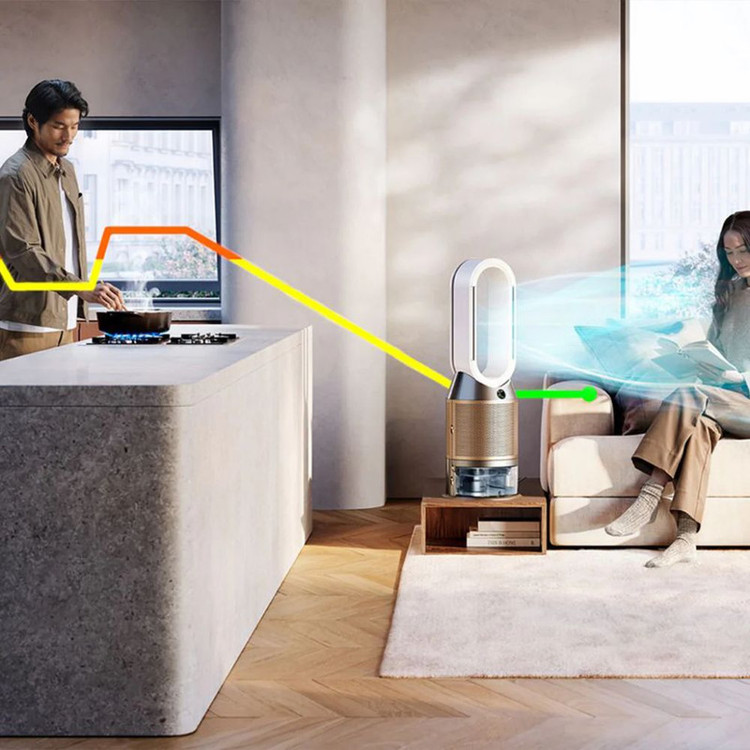 مرطوبسازی و خنککنندگی همراه با تصفیه هوای پیشرفته هوا را بهصورت بهداشتی مرطوب کرده و خنک میکند و همزمان گرد و غبار، بوها، آلرژنها و باکتریها را از بین میبرد تا محیطی سالمتر در خانه فراهم شود. دستگاه با استفاده از فناوری Dyson Air Multiplier™ جریان قدرتمند و مرطوبشدهای از هوای تصفیهشده را به گردش درمیآورد و آن را بهصورت یکنواخت در سراسر فضا پخش میکند. سیستم مدیریت آب کارآمد به همراه مخزن ۵ لیتری، امکان مرطوبسازی بهداشتی هوا را تا ۳۶ ساعت بدون نیاز به پر کردن مکرر فراهم میکند. چرخه پاکسازی عمیق دستگاه بهصورت ماهانه تنها با لمس یک دکمه فعال میشود و کاربر را مرحلهبهمرحله در این فرایند ساده راهنمایی میکند. تعویض فیلتر HEPA+K-Carbon بسیار سریع و آسان انجام میشود. نمایشگر LCD دستگاه و اپلیکیشن MyDyson™ کاربر را از زمان تعویض فیلتر مطلع میکنند. اپلیکیشن MyDyson™ به شما این امکان را میدهد که کیفیت هوای خانه را از هر مکانی بررسی کرده، برنامهریزی کنید و عملکرد دستگاه را کنترل نمایید. همچنین میتوان از طریق سرویسهای صوتی سازگار، دستگاه را بدون نیاز به تماس فیزیکی کنترل کرد. فیلتر K-Carbon این دستگاه با استفاده از پتاسیم کربنات (K₂CO₃) ساخته شده و قادر است تا ۵۰ درصد بیشتر از فیلترهای معمولی، گاز دیاکسید نیتروژن (NO₂) را که یکی از آلایندههای رایج و مضر خانگی است جذب کند. حسگرهای یکپارچه بهصورت مداوم کیفیت هوای محیط را تحلیل میکنند و الگوریتم اختصاصی Dyson دادهها را در هر ثانیه بررسی میکند. این سیستم آلایندهها را در سطح مولکولی تشخیص داده و نتایج را بهصورت زنده روی نمایشگر LCD و در اپلیکیشن MyDyson™ نمایش میدهد. سیستم فیلتراسیون سهمرحلهای و کاملاً مهر و مومشده، آلایندهها را درون دستگاه نگه میدارد. این فیلترها ۹۹.۹۵٪ از ذرات فوقالعاده ریز را جذب کرده، بوها و گازها را حذف میکنند و بهطور پیوسته فرمالدئید را تجزیه و نابود میسازند. فناوری Air Multiplier™ جریان هوایی روان، قدرتمند و یکنواخت را با حجم بیش از ۳۲۰ لیتر در ثانیه به فضا منتشر میکند. تکنولوژی Ultraviolet Cleanse در دستگاه Dyson هر قطره آب را در معرض نور UV با طول موج ۲۷۵ نانومتر قرار میدهد که ۹۹.۹٪ باکتریهای موجود در آب را از بین میبرد تا هوا بهصورت بهداشتی مرطوب شود.